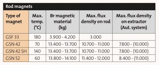 By rotation of the magnet bars on a rotor, bridge forming on the bars is relatively little and thus a much better magnetic separation/filter result is created in comparison to non- rotating cleanflows.