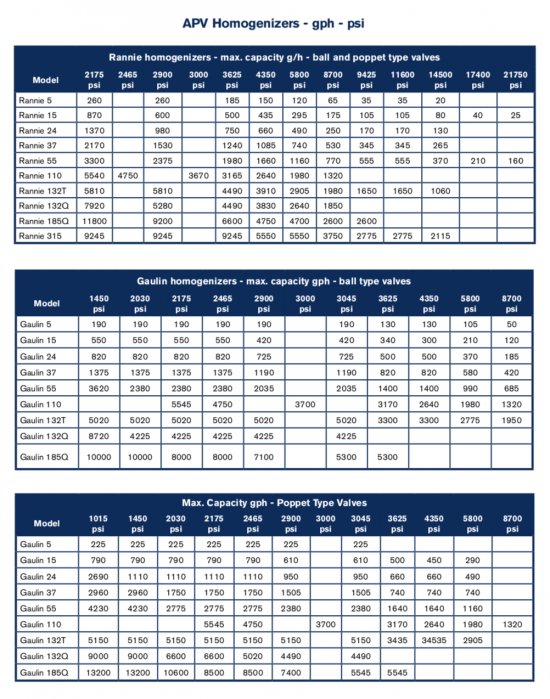 Standard Options for Rannie 132Q / Gaulin 132Q :