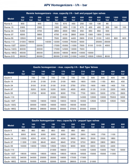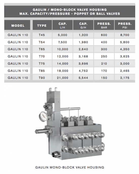 The Rannie 55 / Gaulin 55 homogeniser, a positive displacement triplex, reciprocating plunger pump, is fitted with an applicationspecific homogenising valve assembly: single-stage with hydraulic actuation. this homogeniser incorporates a durable slow-speed power end that reduces vibration and noise. Easy access to the hydraulic actuation system, lubrication oil and other auxiliary systems simplifies maintenance saving time and money. Liquid end options include a three-piece valve housing (Rannie) and a mono-block design (Gaulin) (ball and poppet style).