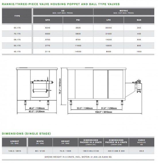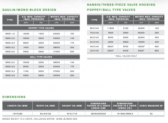 APV High-pressure Homogenizer Rannie 185Q / Gaulin 185Q and Rannie 275Q